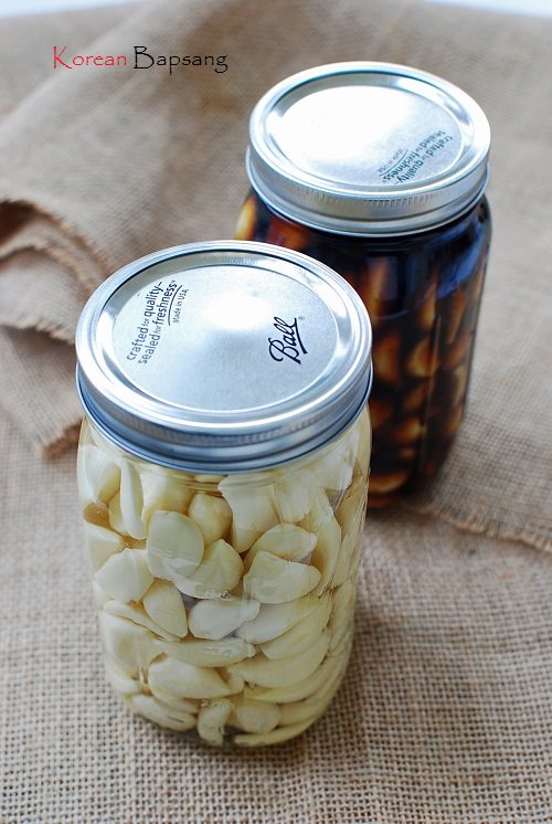 Maneul Jangajji is a popular form of Jangajji, a type of Korean banchan (side dish) that refers to pickled vegetables prepared in many styles using a variety of ingredients. Maneul means garlic in Korean, and this dish can either be prepared with sliced garlic bulbs or with individual cloves. The garlic is soaked in vinegar and soy sauce, until the cloves soak up the flavors and become soft enough so that the strong odor of garlic is no longer present. Maneul Jangajji is marinated and fermented for long periods of time, and the taste improves with time. The fermentation period can last anywhere from 2 weeks to 2 months, and even up to a year.